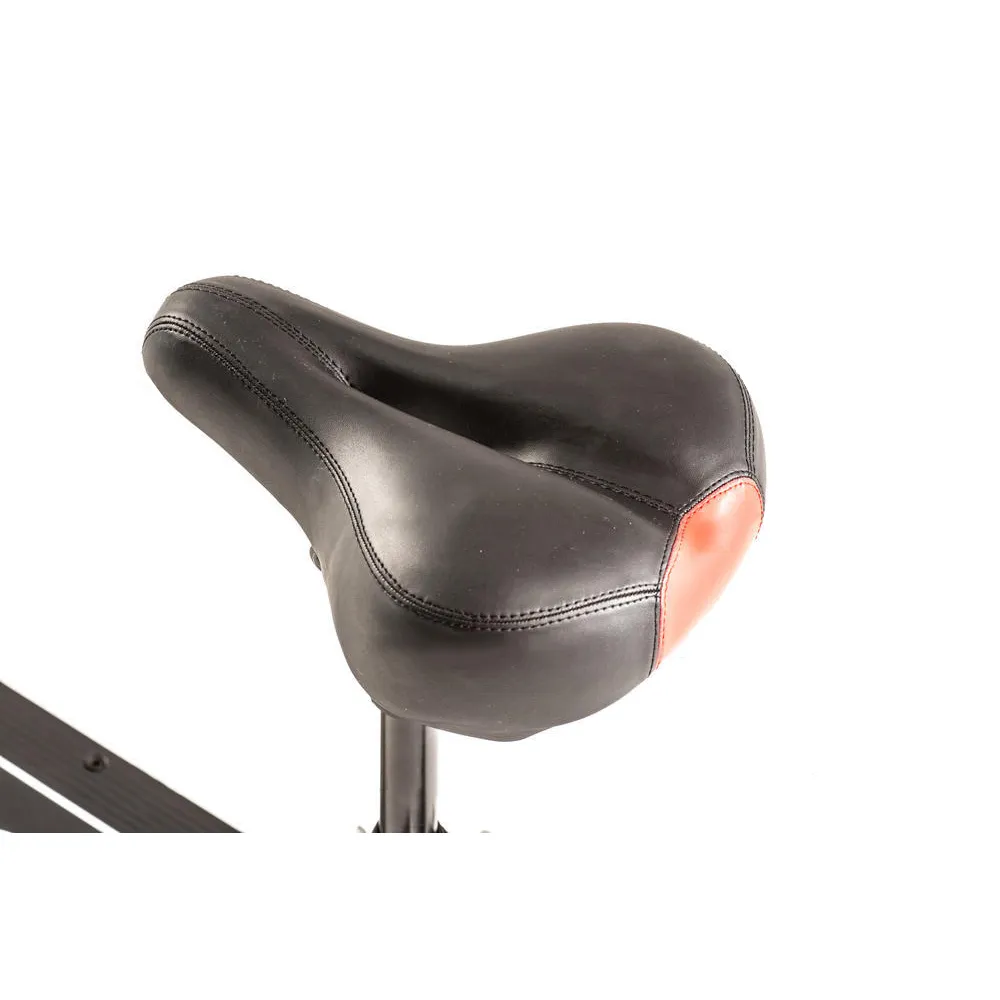 Электросамокат оснащен сиденьем, которое не просто мягкое, а еще и съёмное, регулируется по высоте и имеет амортизаторы. Руль модели регулируется по высоте, складывается. Электросамокат имеет рычаг тормоза, который обеспечивает резкое торможение независимо от ситуации на дороге. Звуковой сигнал на модели обеспечивает безопасность движения. Подсветка на электросамокате обеспечивает яркое свечение и привлекает внимание прохожих.