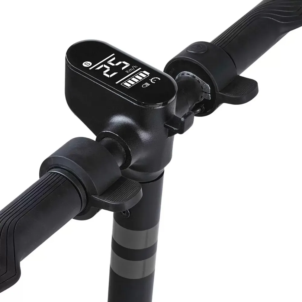 Заряжать его можно даже от домашней сети, потребуется все-лишь 4 часа для полного заряда в 100%. Весит девайс немало - 11,5 килограмм, но и вес ездока может быть вплоть до 100 килограмм. Разгоняется он при помощи электрического мотора до 25 км/ч. Управлять электросамокатом можно при помощи руля, на котором расположен ЖК-дисплей со всеми данными.