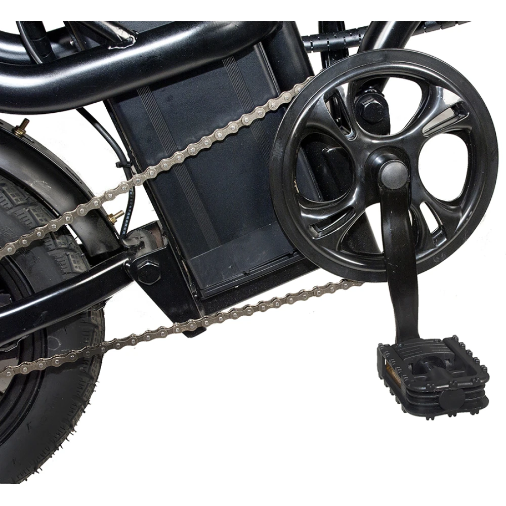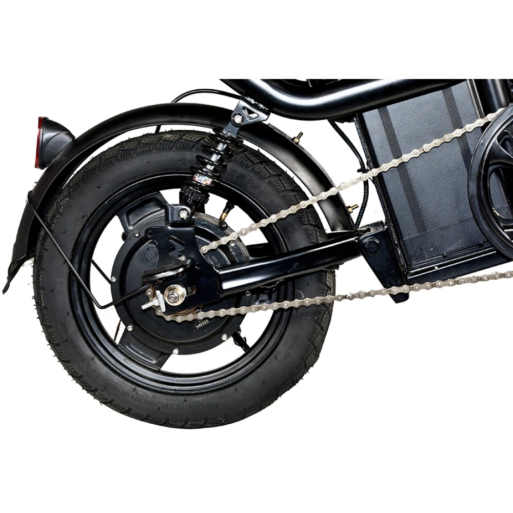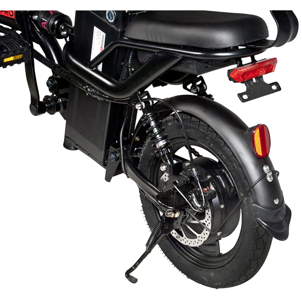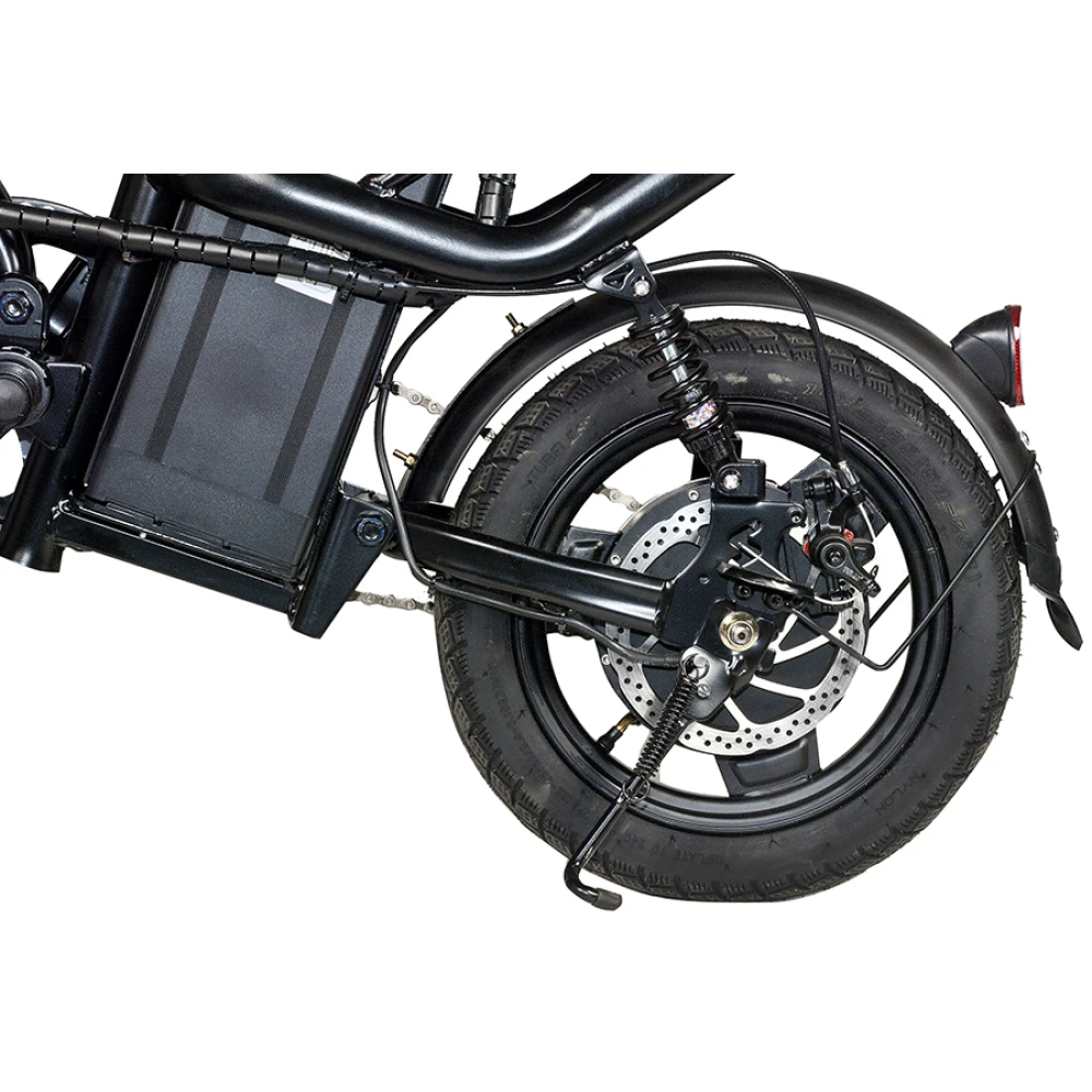 Электровелосипед оборудован мощным движком 350 Вт с задним приводом. Емкая АКБ 12000 мАч обеспечивает пробег на одном заряде до 50 км при максимальных скоростных показателях 40 км/час. Механические тормоза гарантируют полную безопасность ездока. Пользователю не составит труда легко маневрировать в плотном городском потоке благодаря малому весу (24.5 кг) тс. Алюминиевый корпус имеет особо прочную конструкцию и специальный состав покрытия для защиты от механических повреждений. Для большего удобства и увеличения пройденного пути производитель предусмотрел переход на педальный режим. Оснащение девайса фирменными амортизаторами делает его неуязвимым перед дорожными неровностями. Надеемся вам понравился товар. Для быстрого оформления заказа и доставки модели предлагаем связаться с нашим менеджером по телефону или посредством онлайн-чата.