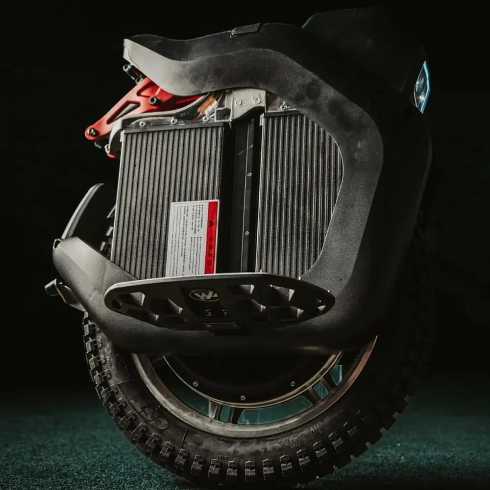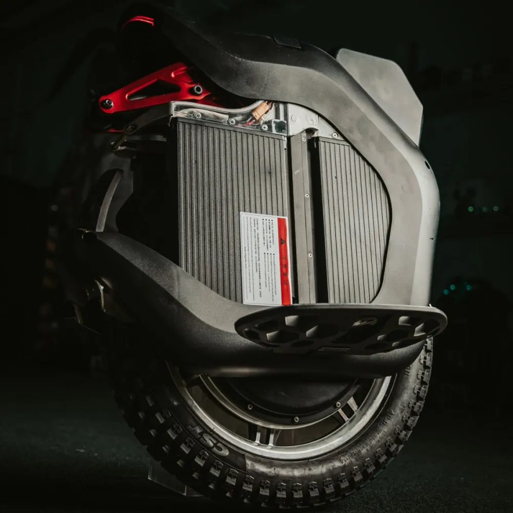 Моноколесо оснащено выдвигающейся телескопической ручки обеспечивает удобную транспортировку изделия. Педальная часть длинная, нескользящая благодаря шипам, не допускает случайного соскальзывания стоп. Яркая светодиодная фара с возможностью регулировки угла наклона допускает движение в ночное время и непогоду. Монохромный дисплей не дает бликов, удобный в эксплуатации, позволяет контролировать скорость, пробег и заряд батареи.