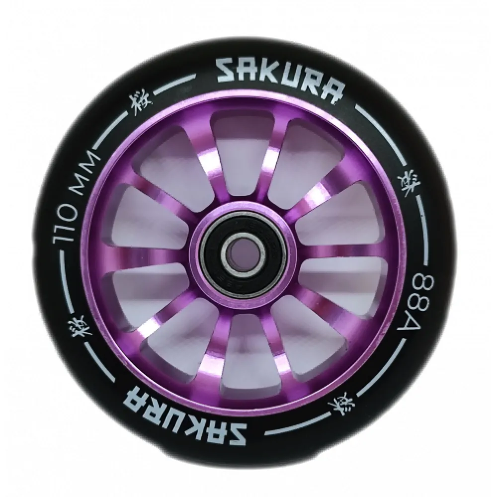 Колесо для трюкового самоката Haevner алюминиевое (110мм/ABEC 9) в черно-малиновом